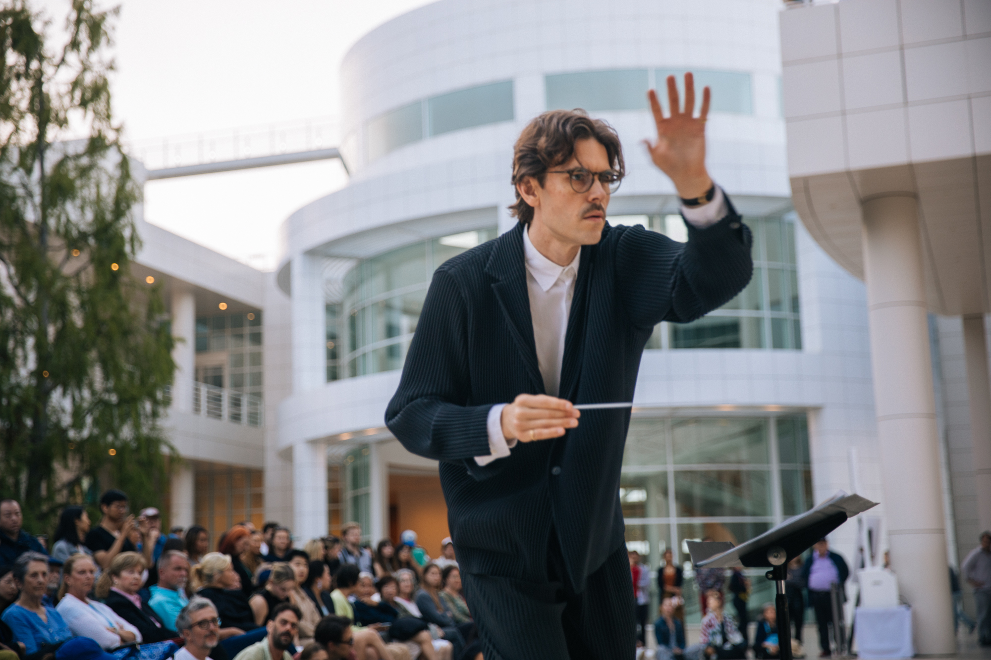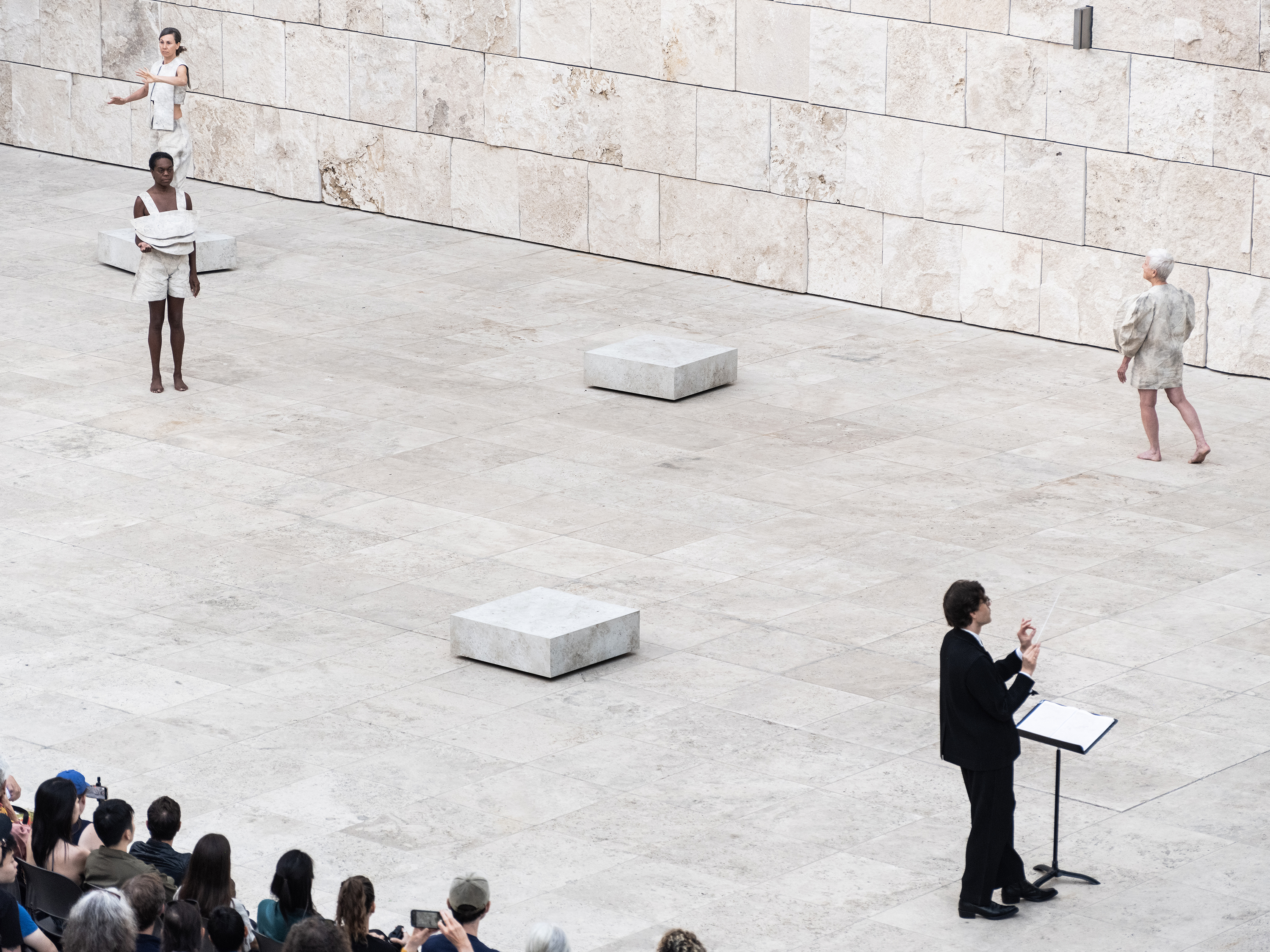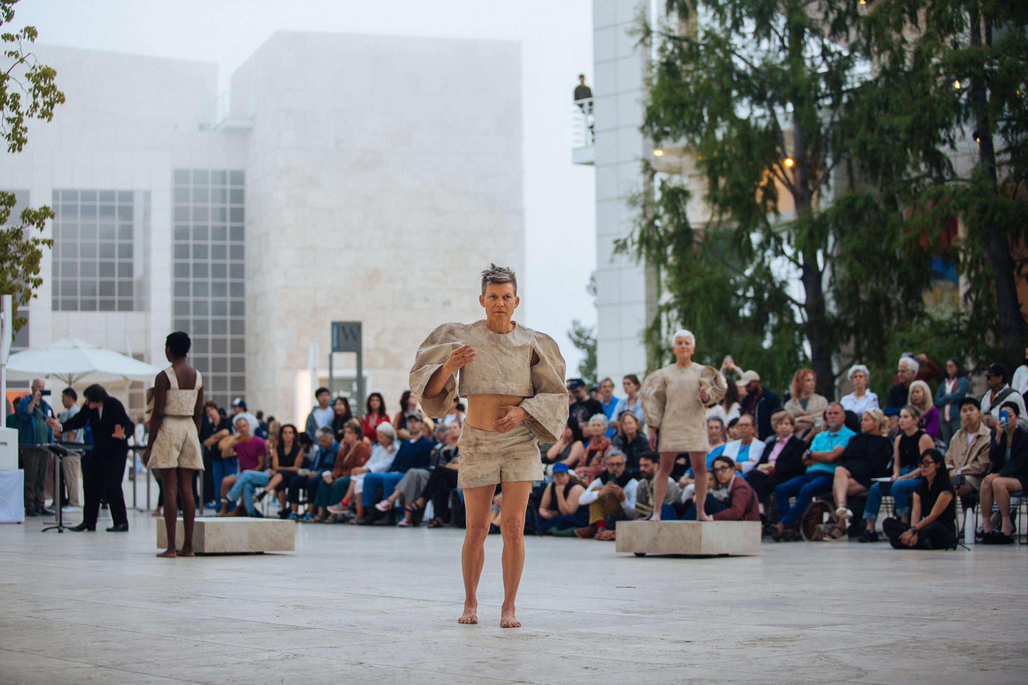 This afternoon of live performance reimagined works central to the legacy of Experiments in Art and Technology (E.A.T.), a non-profit organization founded in 1966 that paired artists from New York’s avant-garde with the innovative engineers at Bell Laboratories—a groundbreaking venture celebrated in the archival exhibition Sensing the Future. Included was a reimagining of Deborah Hay’s solo (1966) as Solo Two (2024). Tailored to the Getty’s environment, the performance included an ensemble of dancers performing with remote-controlled vehicles. Hay’s new realization of this piece deviates from, yet remains indelibly linked to, the archive.